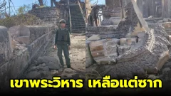 เขาพระวิหารในวันที่เหลือแต่ซาก หลังถูก BM-21 ถล่มย่อยยับ โซเชียลไทยตั้งคำถาม “ถ้ารักจริง ทำไมใช้เป็นฐานรบ”